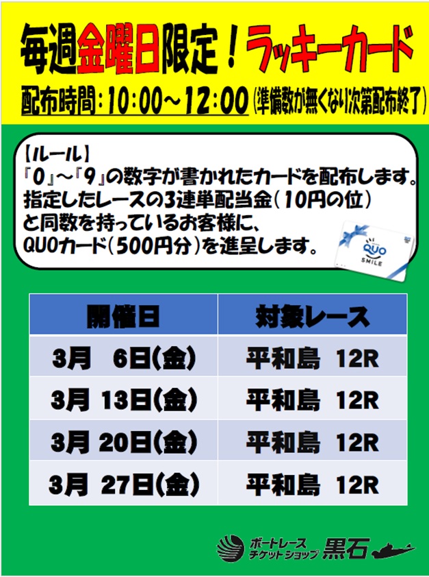宝くじ配布期間:3月1日(日)~3月8日(日) |