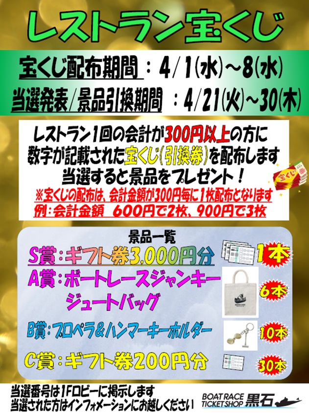 宝くじ配布期間:4月1日(水)~4月1日(水) |